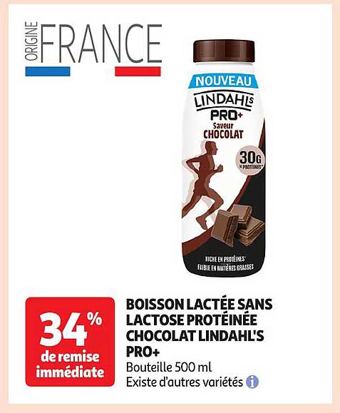 Offre de Boisson Lactée Sans Lactose Protéinée Chocolat Lindahl's Pro+ chez Auchan