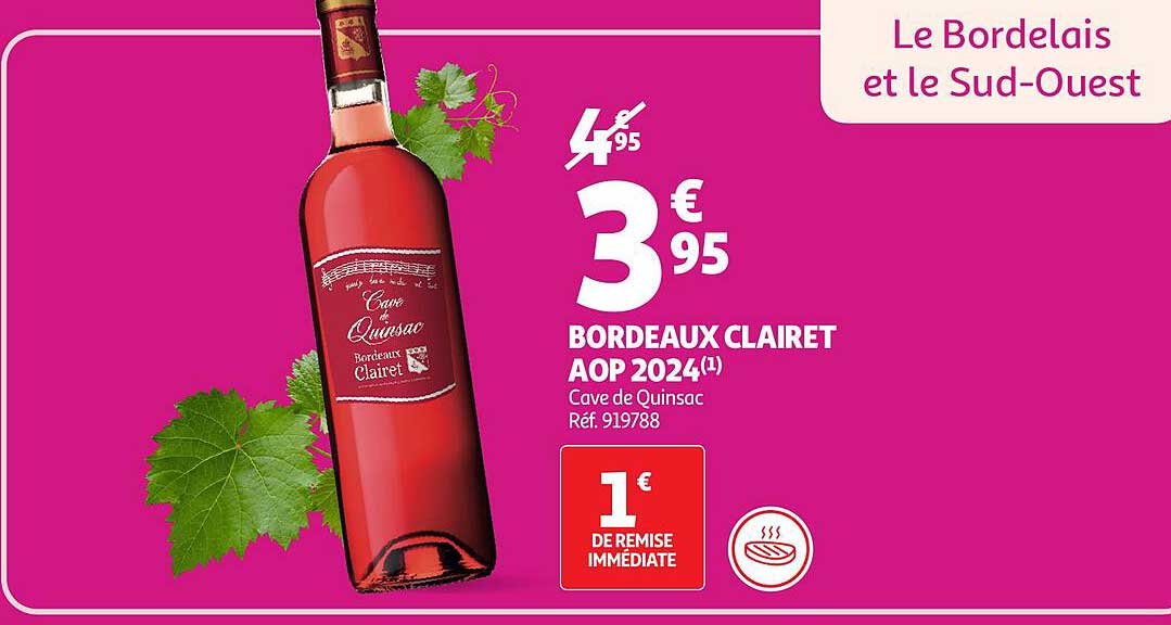 Découvrez dès maintenant la offre BORDEAUX CLAIRET AOP 2024 dans le catalogue de Auchan. Cette offre est valable du 30/09/2025 au 12/10/2025.