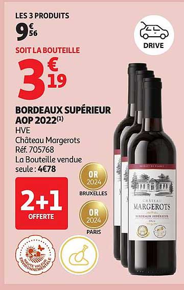 Découvrez dès maintenant la offre BORDEAUX SUPÉRIEUR AOP 2022 dans le catalogue de Auchan. Cette offre est valable du 30/09/2025 au 12/10/2025.