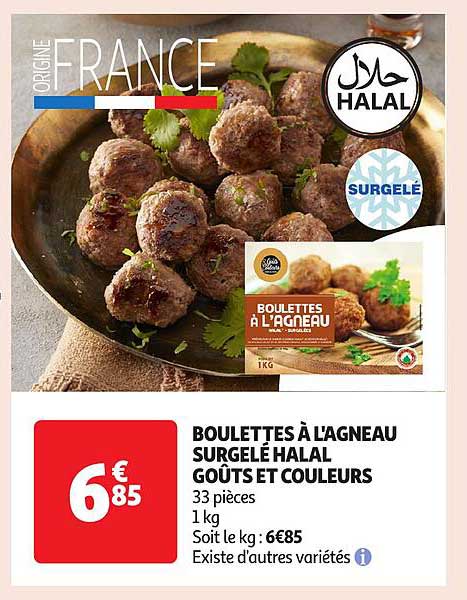 Offre de Boulettes À L'agneau Surgelé Halal Goûts Et Couleurs chez Auchan