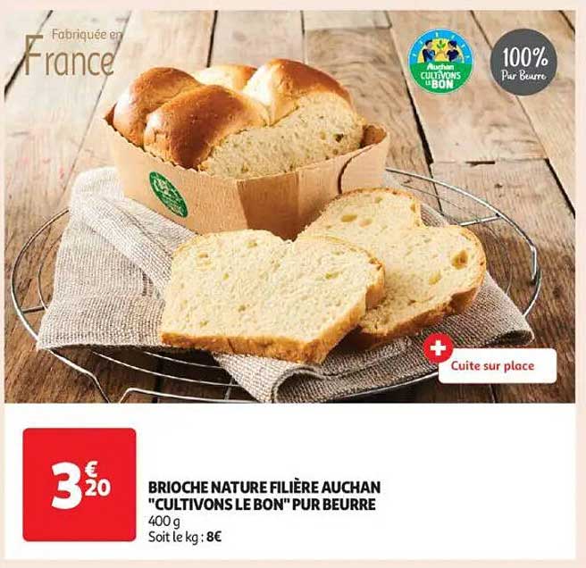 Offre de Brioche Nature Filière Auchan "Cultivons Le Bon" Pur Beurre chez Auchan