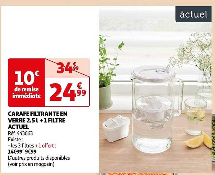 Découvrez l'offre de Carafe Filtrante En Verre 2.5 L + 1 Filtre Actuel chez Auchan! Cette offre fantastique est maintenant disponible dans le nouveau catalogue de Auchan. Profitez de cette occasion et économisez considérablement sur votre achat.
