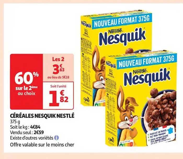 Offre de Céréales Nesquik Nestlé chez Auchan