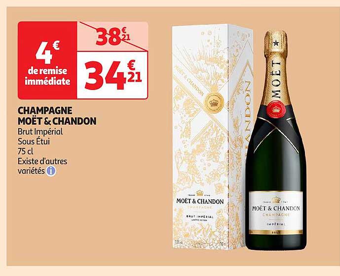 Découvrez l'offre de Champagne Moët & Chandon chez Auchan! Cette offre fantastique est maintenant disponible dans le nouveau catalogue de Auchan. Profitez de cette occasion et économisez considérablement sur votre achat.