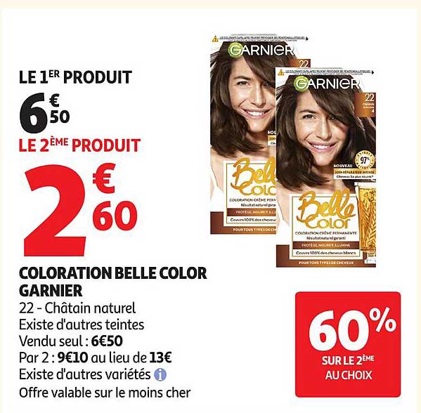 Vous recherchez une coloration qui sublime vos cheveux tout en respectant leur nature ? Découvrez l'offre exceptionnelle sur la coloration Belle Color de Garnier, disponible à un prix défiant toute concurrence. Du 14 au 26 octobre 2025, profitez de cette opportunité pour changer de look tout en faisant des économies. Pourquoi ne pas oser une nouvelle teinte et illuminer votre quotidien ?