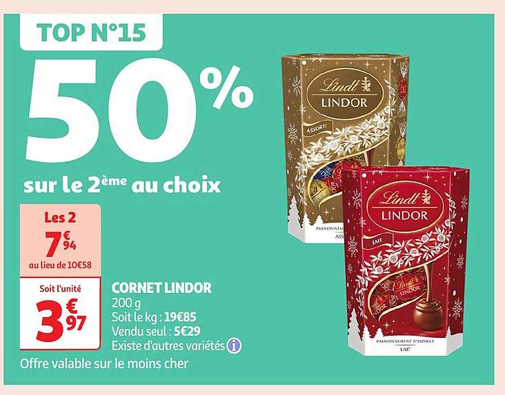 Découvrez l'offre de Cornet Lindor chez Auchan! Cette offre fantastique est maintenant disponible dans le nouveau catalogue de Auchan. Profitez de cette occasion et économisez considérablement sur votre achat.