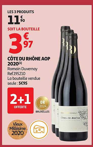 Découvrez dès maintenant la offre CÔTE DU RHÔNE AOP 2020 dans le catalogue de Auchan. Cette offre est valable du 30/09/2025 au 12/10/2025.
