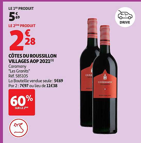 Vous recherchez une bonne bouteille de vin pour accompagner vos repas ? Ne cherchez pas plus loin ! La promotion actuelle sur les Côtes du Roussillon Villages AOP 2021 de Caramany est tout simplement irrésistible. Avec un prix de seulement 2,28 € pour la deuxième bouteille, il est temps de profiter de cette offre avantageuse.