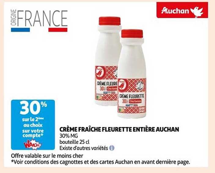 Découvrez l'offre de Crème Fraîche Fleurette Entière Auchan chez Auchan! Cette offre fantastique est maintenant disponible dans le nouveau catalogue de Auchan. Profitez de cette occasion et économisez considérablement sur votre achat.