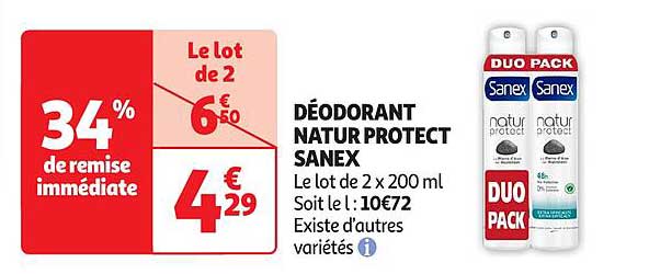 Offre de Déodorant Natur Protect Sanex chez Auchan