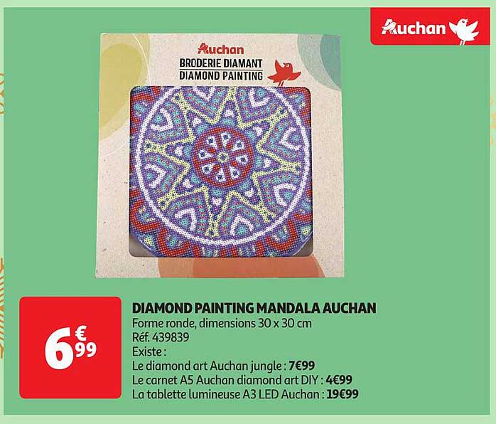 Découvrez l'offre de Diamond Painting Mandala Auchan chez Auchan! Cette offre fantastique est maintenant disponible dans le nouveau catalogue de Auchan. Profitez de cette occasion et économisez considérablement sur votre achat.