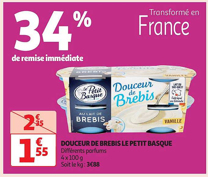 Découvrez l'offre de Douceur De Brebis Le Petit Basque chez Auchan! Cette offre fantastique est maintenant disponible dans le nouveau catalogue de Auchan. Profitez de cette occasion et économisez considérablement sur votre achat.