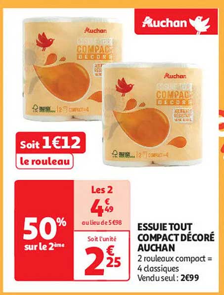 Offre de Essuie Tout Compact Décoré Auchan chez Auchan