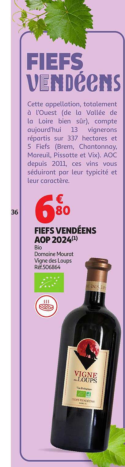 Découvrez dès maintenant la offre FIEFS VENDÉENS AOP 2024 dans le catalogue de Auchan. Cette offre est valable du 30/09/2025 au 12/10/2025.