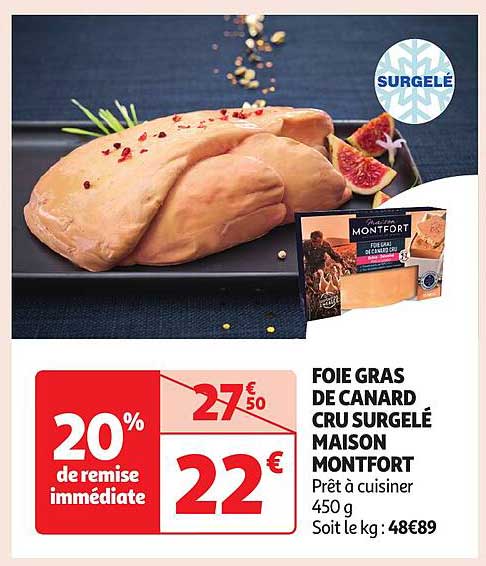 Découvrez une offre exceptionnelle sur le foie gras de canard cru surgelé de la Maison Montfort, un incontournable pour les amateurs de gastronomie. Profitez d'une réduction de 20 % et savourez ce délice à un prix défiant toute concurrence. Que ce soit pour une occasion spéciale ou un repas sophistiqué, ce produit est prêt à cuire et saura éblouir vos convives.