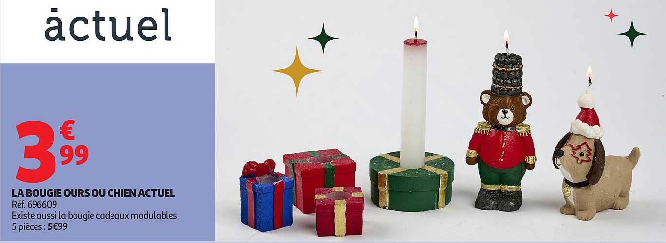 Découvrez dès maintenant la offre LA BOUGIE OURS OU CHIEN ACTUEL dans le catalogue de Auchan. Cette offre est valable du 12/11/2025 au 24/11/2025.