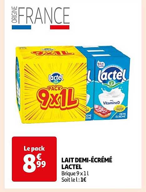 Offre de Lait Demi-Écrémé Lactel chez Auchan