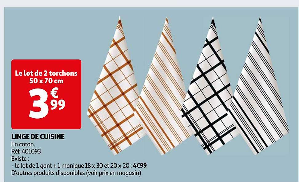 Découvrez l'offre de Linge De Cuisine chez Auchan! Cette offre fantastique est maintenant disponible dans le nouveau catalogue de Auchan. Profitez de cette occasion et économisez considérablement sur votre achat.