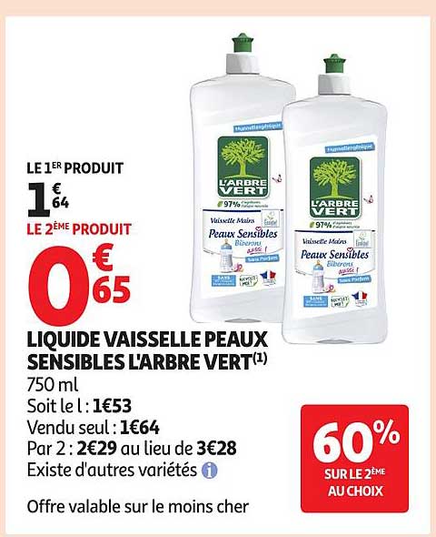 Découvrez l'incroyable promotion sur le liquide vaisselle Peaux Sensibles de L'Arbre Vert. Offrez à votre vaisselle une propreté éclatante tout en prenant soin de vos mains. Cette offre est valable du 4 au 16 novembre 2025, une occasion à ne pas manquer pour faire des économies tout en choisissant des produits respectueux de votre peau.