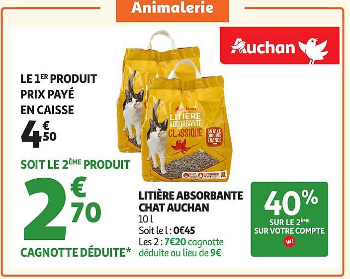 Si vous êtes l'heureux propriétaire d'un chat, cette offre de Auchan sur la litière absorbante est incontournable ! Pour la période du 12 au 23 novembre 2025, profitez d'un produit de grande qualité à un prix réduit. Offrez à votre compagnon félin un environnement propre et confortable sans vous ruiner.