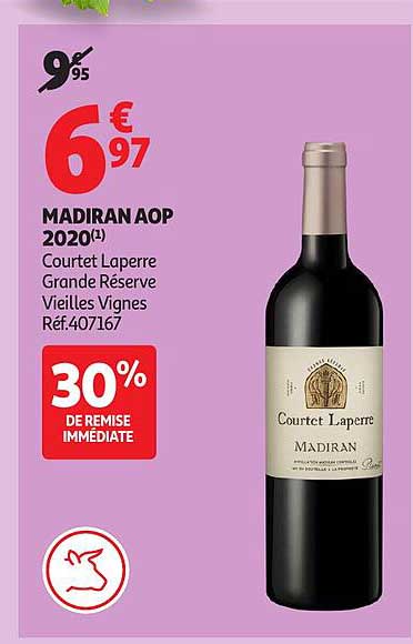 Découvrez dès maintenant la offre MADIRAN AOP 2020 - Courtet Laperre Grande Réserve Vieilles Vignes dans le catalogue de Auchan. Cette offre est valable du 30/09/2025 au 12/10/2025.