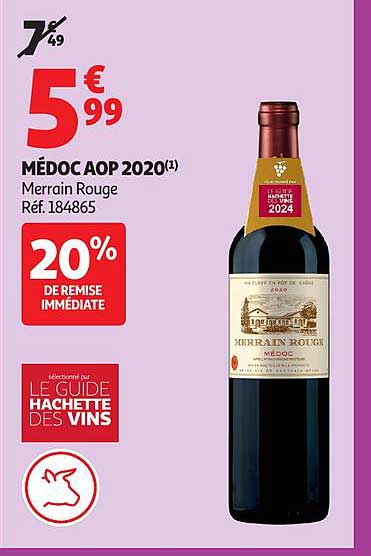 Découvrez dès maintenant la offre MÉDOC AOP 2020 Merrain Rouge dans le catalogue de Auchan. Cette offre est valable du 30/09/2025 au 12/10/2025.