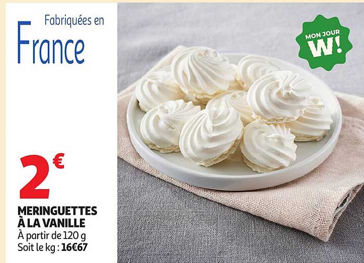 Les meringuettes à la vanille sont un délice sucré qui fond dans la bouche, parfaites pour accompagner un café ou à déguster lors d'une pause gourmande. Profitez de cette offre incroyable disponible jusqu'au 12 octobre 2025.