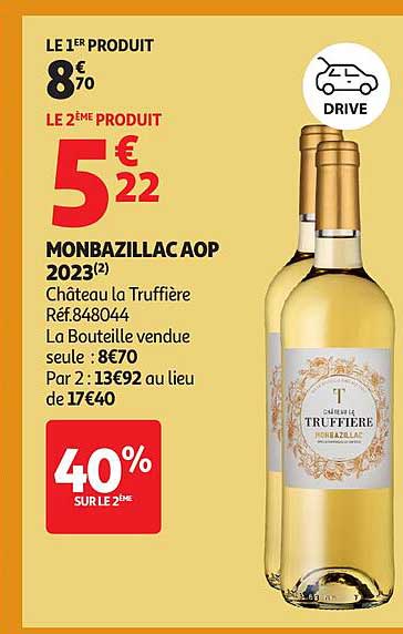 Découvrez dès maintenant la offre MONBAZILLAC AOP 2023 dans le catalogue de Auchan. Cette offre est valable du 30/09/2025 au 12/10/2025.