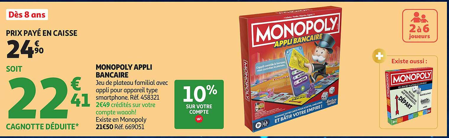 Découvrez dès maintenant la offre MONOPOLY APPLI BANCAIRE dans le catalogue de Auchan. Cette offre est valable du 21/10/2025 au 07/12/2025.