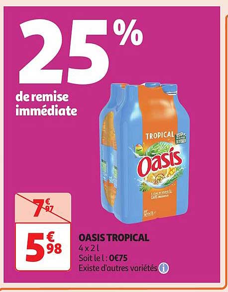 Découvrez l'offre de Oasis Tropical chez Auchan! Cette offre fantastique est maintenant disponible dans le nouveau catalogue de Auchan. Profitez de cette occasion et économisez considérablement sur votre achat.