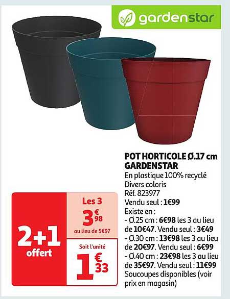 Découvrez l'offre de Pot Horticole 0.17 Cm Gardenstar chez Auchan! Cette offre fantastique est maintenant disponible dans le nouveau catalogue de Auchan. Profitez de cette occasion et économisez considérablement sur votre achat.