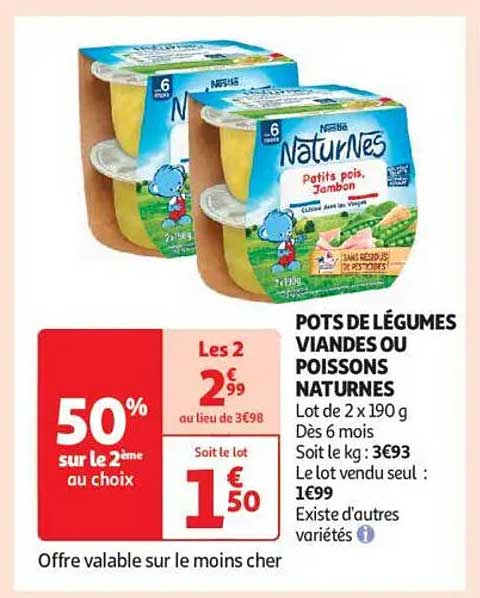 Offre de Pots De Légumes Viandes Ou Poissons Natures chez Auchan