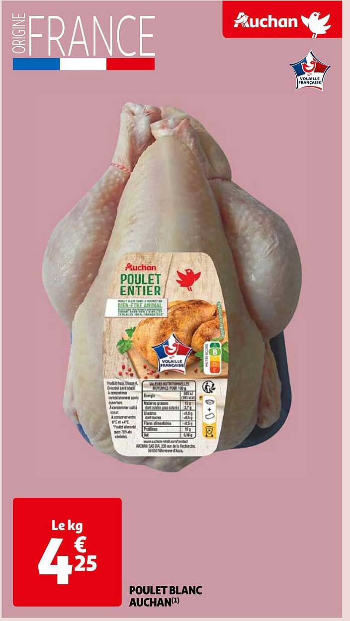 Découvrez l'offre de Poulet Entier chez Auchan! Cette offre fantastique est maintenant disponible dans le nouveau catalogue de Auchan. Profitez de cette occasion et économisez considérablement sur votre achat.