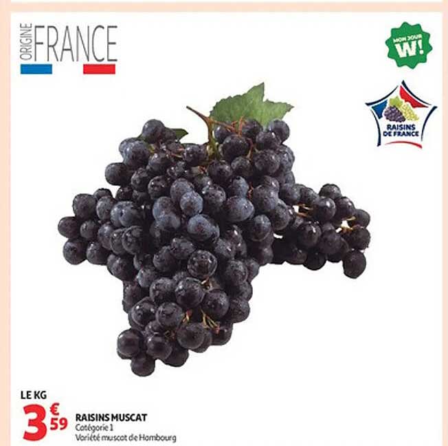 Découvrez les savoureux raisins Muscat, une variété de qualité supérieure qui apportera une touche sucrée et juteuse à vos collations. Profitez d’une offre exceptionnelle du 9 au 12 octobre 2025, où ces délices de la nature sont proposés à un prix imbattable.