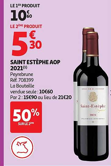 Découvrez dès maintenant la offre SAINT ESTÈPHE AOP 2021 dans le catalogue de Auchan. Cette offre est valable du 30/09/2025 au 12/10/2025.