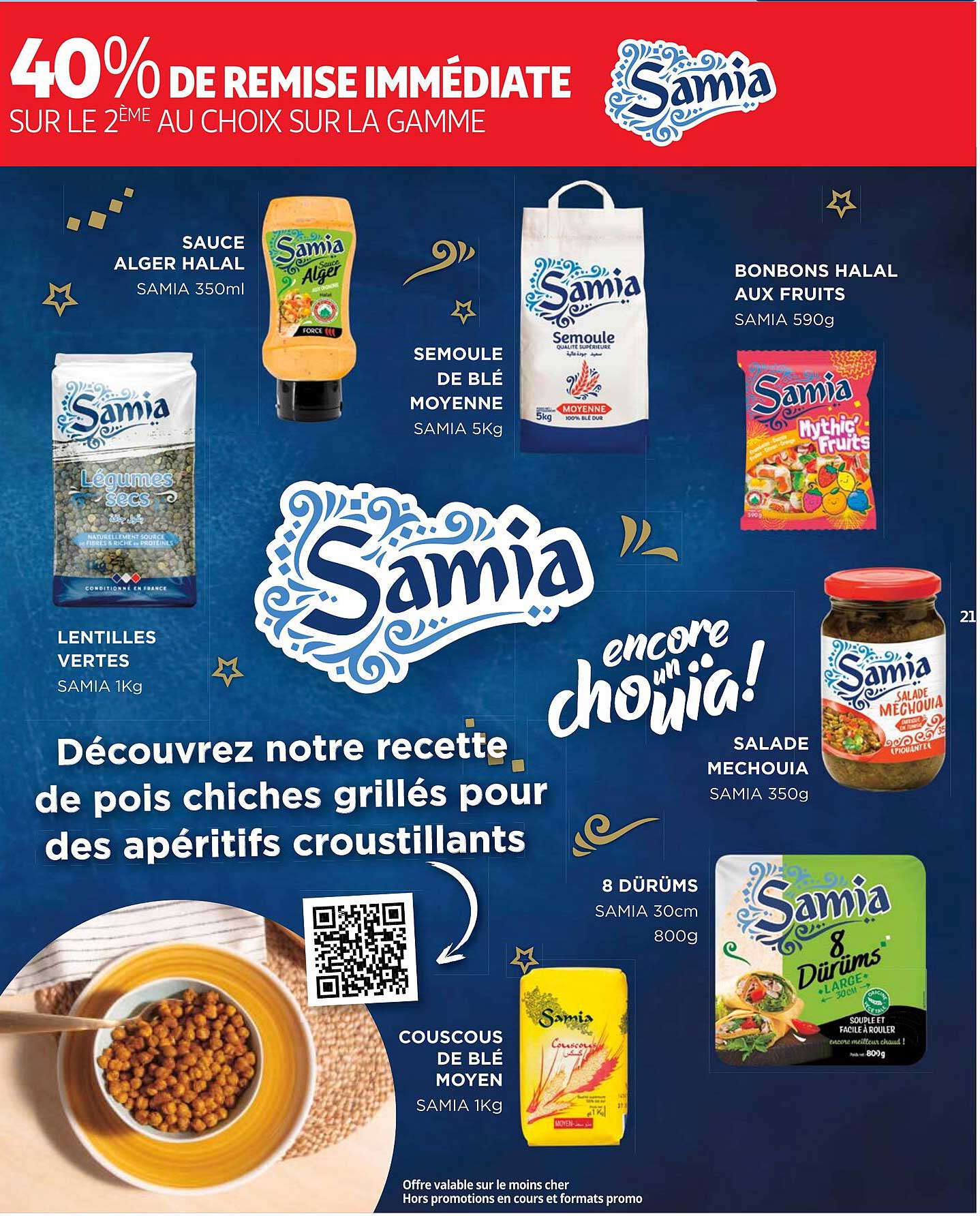 Découvrez dès maintenant la offre Sauce Alger halal Semoule de blé moyenne Bonbons halal aux fruits Lentilles vertes Couscous de blé moyen Salade mechouia 8 Dürums dans le catalogue de Auchan. Cette offre est valable du 08/10/2024 au 14/10/2024.