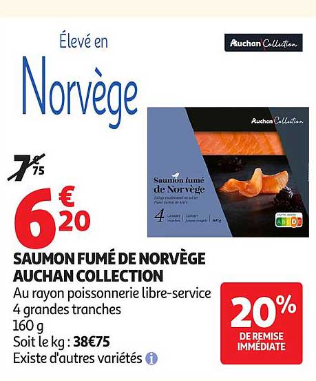 Découvrez dès maintenant la offre SAUMON FUMÉ DE NORVÈGE AUCHAN COLLECTION dans le catalogue de Auchan. Cette offre est valable du 04/11/2025 au 16/11/2025.