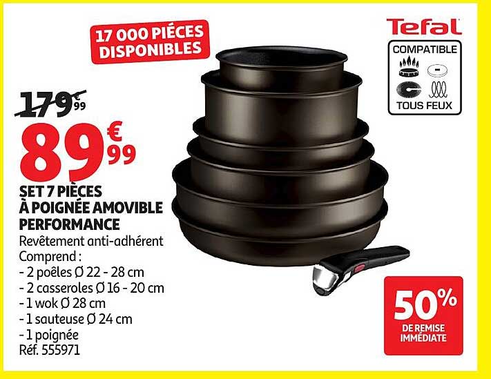 Découvrez dès maintenant la offre SET 7 PIÈCES À POIGNÉE AMOVIBLE PERFORMANCE dans le catalogue de Auchan. Cette offre est valable du 04/11/2025 au 23/11/2025.