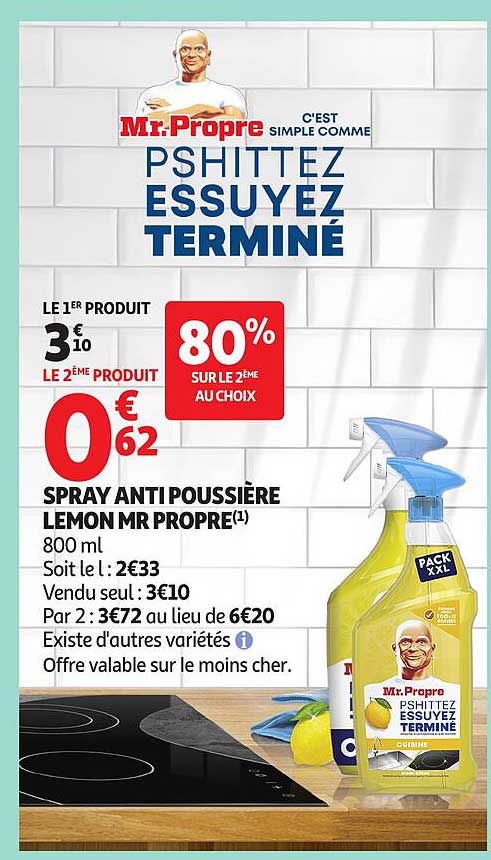 Découvrez dès maintenant la offre SPRAY ANTI POUSSIÈRE LEMON MR PROPRE dans le catalogue de Auchan. Cette offre est valable du 18/11/2025 au 30/11/2025.