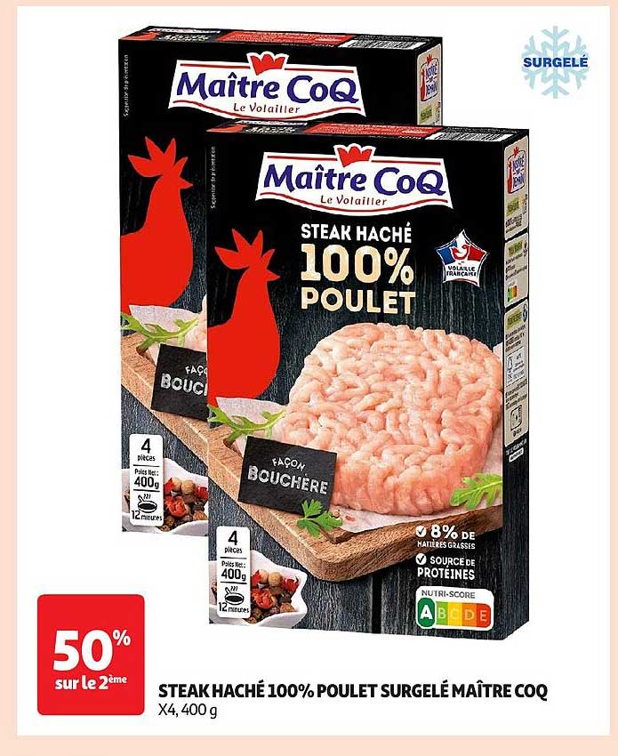 Offre de Steak Haché 100% Poulet Surgelé Maître Coq chez Auchan