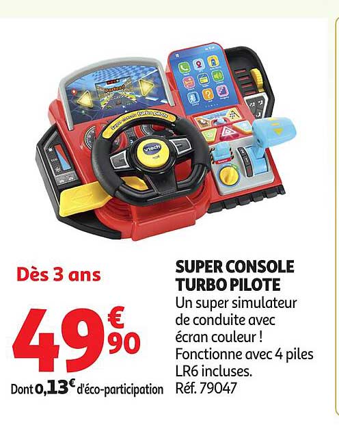 Découvrez dès maintenant la offre SUPER CONSOLE TURBO PILOTE dans le catalogue de Auchan. Cette offre est valable du 21/10/2025 au 07/12/2025.