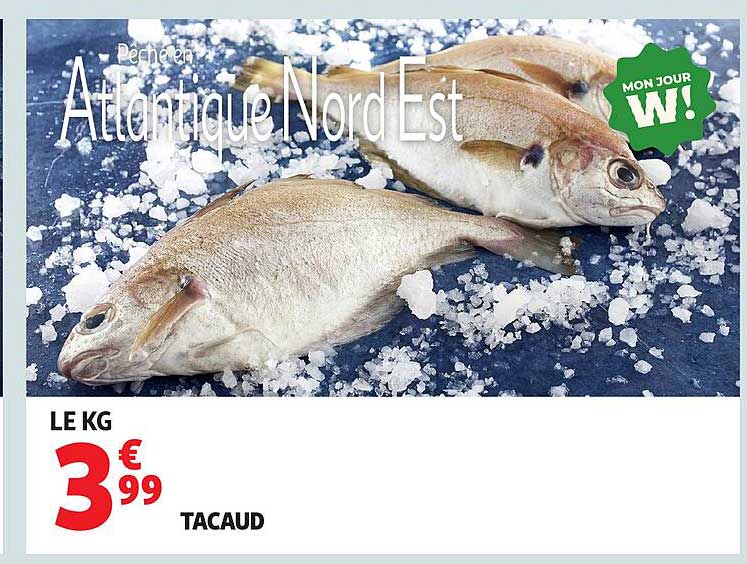 Actuellement, le prix du tacaud est de seulement 3,99 € le kg ! Profitez de cette opportunité incroyable, car le prix habituel est généralement supérieur. C'est le moment parfait pour faire le plein de bonnes affaires !
