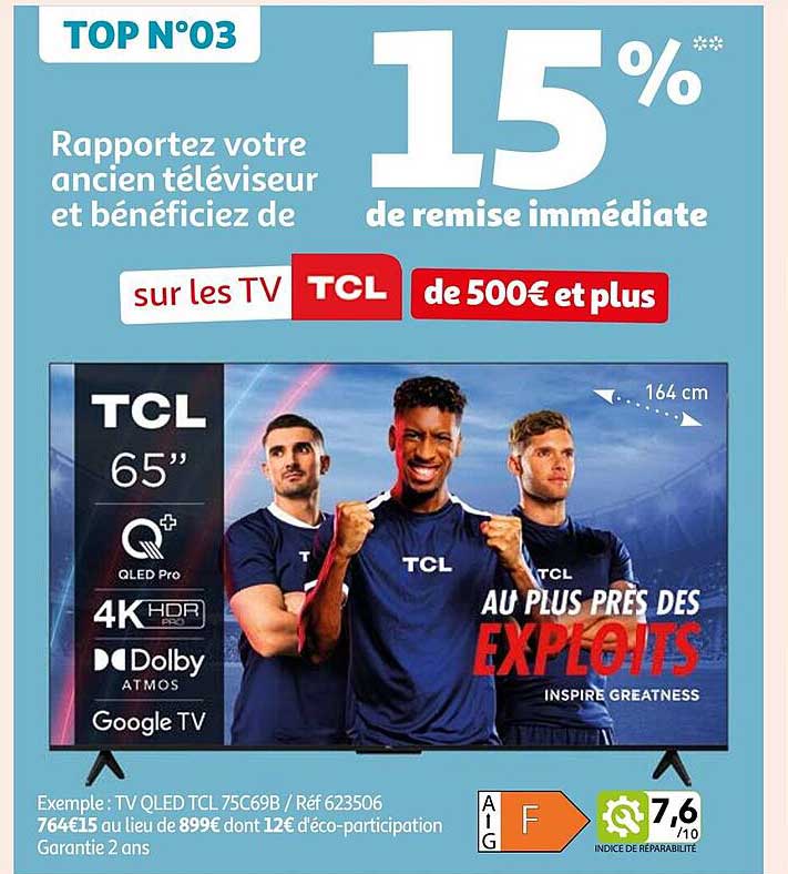 Découvrez dès maintenant la offre TCL dans le catalogue de Auchan. Cette offre est valable du 22/10/2024 au 28/10/2024.