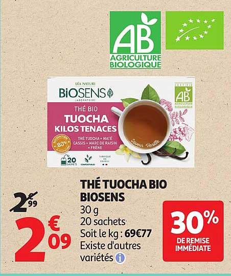 Découvrez dès maintenant la offre THÉ TUOCHA BIO BIOSENS dans le catalogue de Auchan. Cette offre est valable du 02/09/2025 au 14/09/2025.
