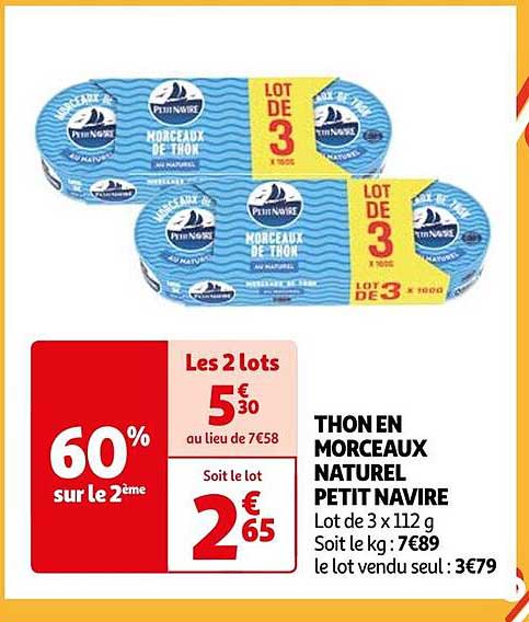 Offre de Thon En Morceaux Naturel Petit Navire chez Auchan
