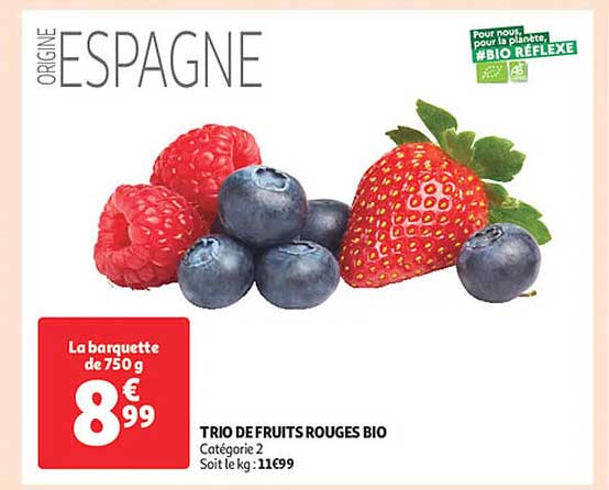 Proposé à 8,99 €, ce trio de fruits rouges représente une économie significative par rapport au prix habituel de 11,99 € le kilogramme. C'est une occasion à ne pas manquer si vous souhaitez allier plaisir et bon sens économique !