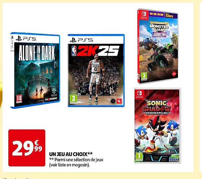 Découvrez l'offre de Un Jeu Au Choix** chez Auchan! Cette offre fantastique est maintenant disponible dans le nouveau catalogue de Auchan. Profitez de cette occasion et économisez considérablement sur votre achat.