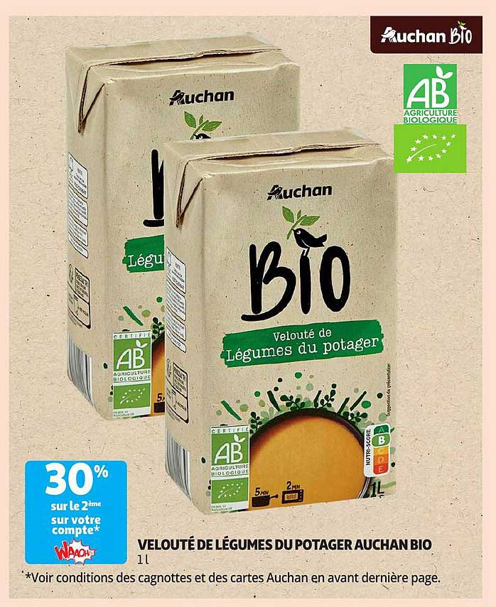 Offre de Velouté De Légumes Du Potager Auchan Bio chez Auchan