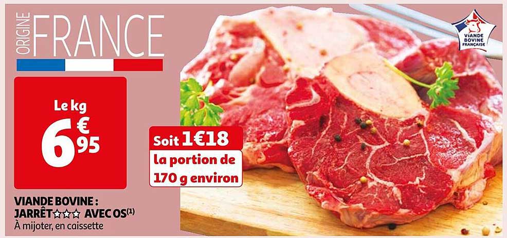 Découvrez dès maintenant la offre VIANDE BOVINE : JARRET avec OS dans le catalogue de Auchan. Cette offre est valable du 05/11/2024 au 11/11/2024.