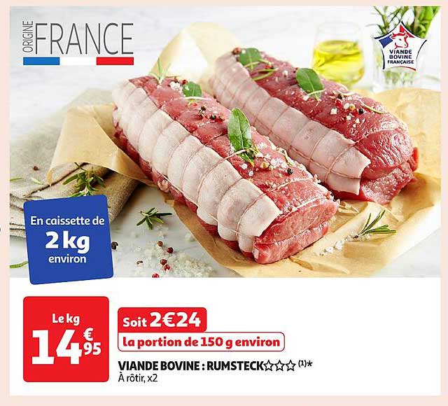 Découvrez une offre exceptionnelle sur la viande bovine de type rumsteck, idéal pour vos repas en famille ou entre amis. Avec une promotion valable jusqu'au 6 avril 2025, c'est le moment parfait pour faire le plein de produits de qualité à un prix imbattable. Cette viande, provenant de France, est non seulement savoureuse, mais également d'une qualité supérieure.